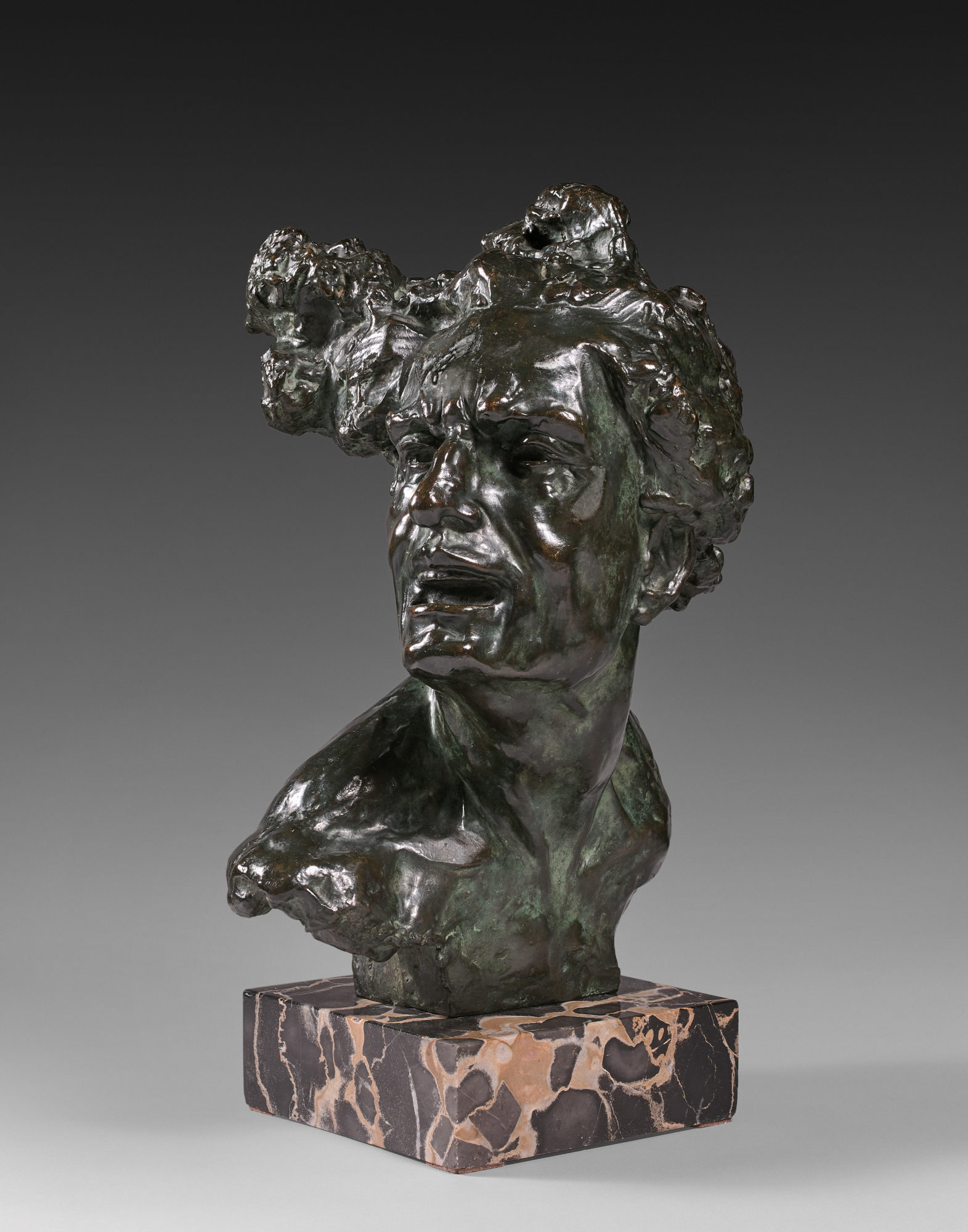 This highly expressive bust, listed as The Head of Gorgon in de Pawlowski’s 1929 biography, conveys Pina’s deep admiration for the work of Auguste Rodin and Constantin Meunier. When Pina moved to Paris in circa 1909-10 he worked in Rodin’s atelier and the experience influenced him profoundly.